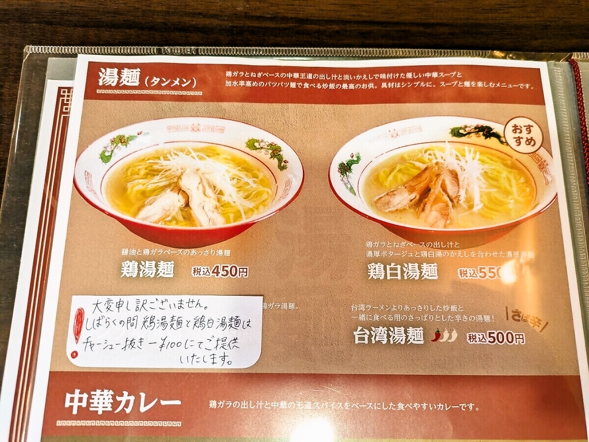 ベースは鶏白湯スープで、白濁しながらも重すぎず、口当たりはまろやか