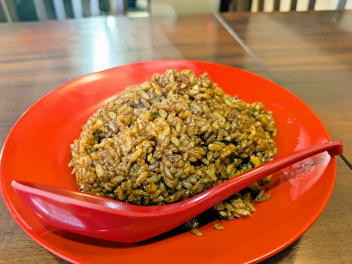 このギャップこそが、漆黒の鶏炒飯の最大の魅力といえる