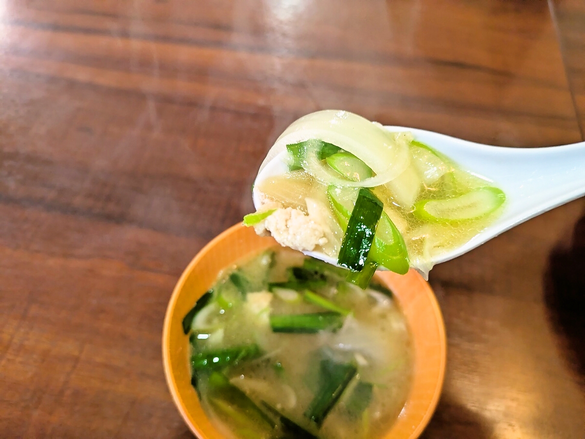 炒飯の香ばしさを受け止めつつ、鶏の優しい旨味で口を整えてくれる