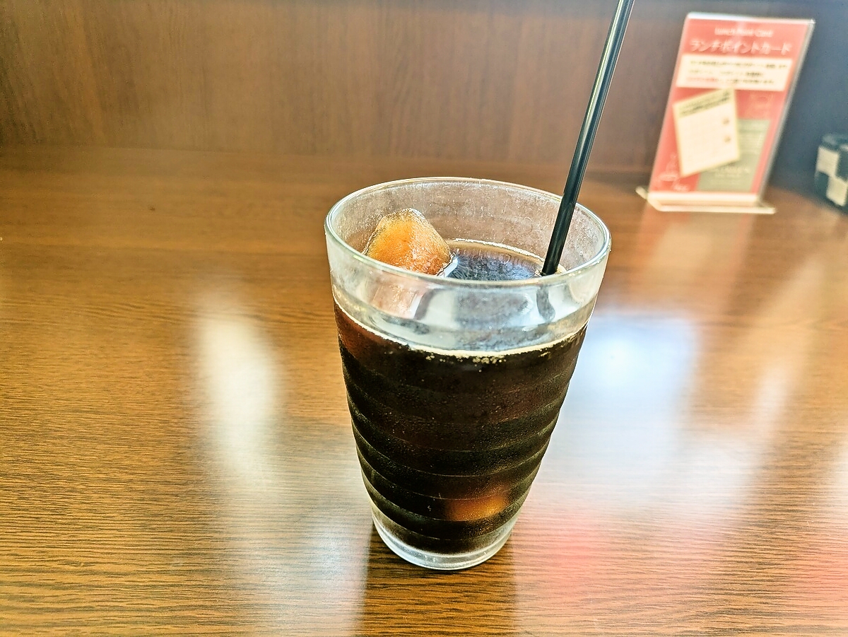 海老フライの余韻を楽しみつつ、キリッと冷えたコーヒーでリフレッシュ
