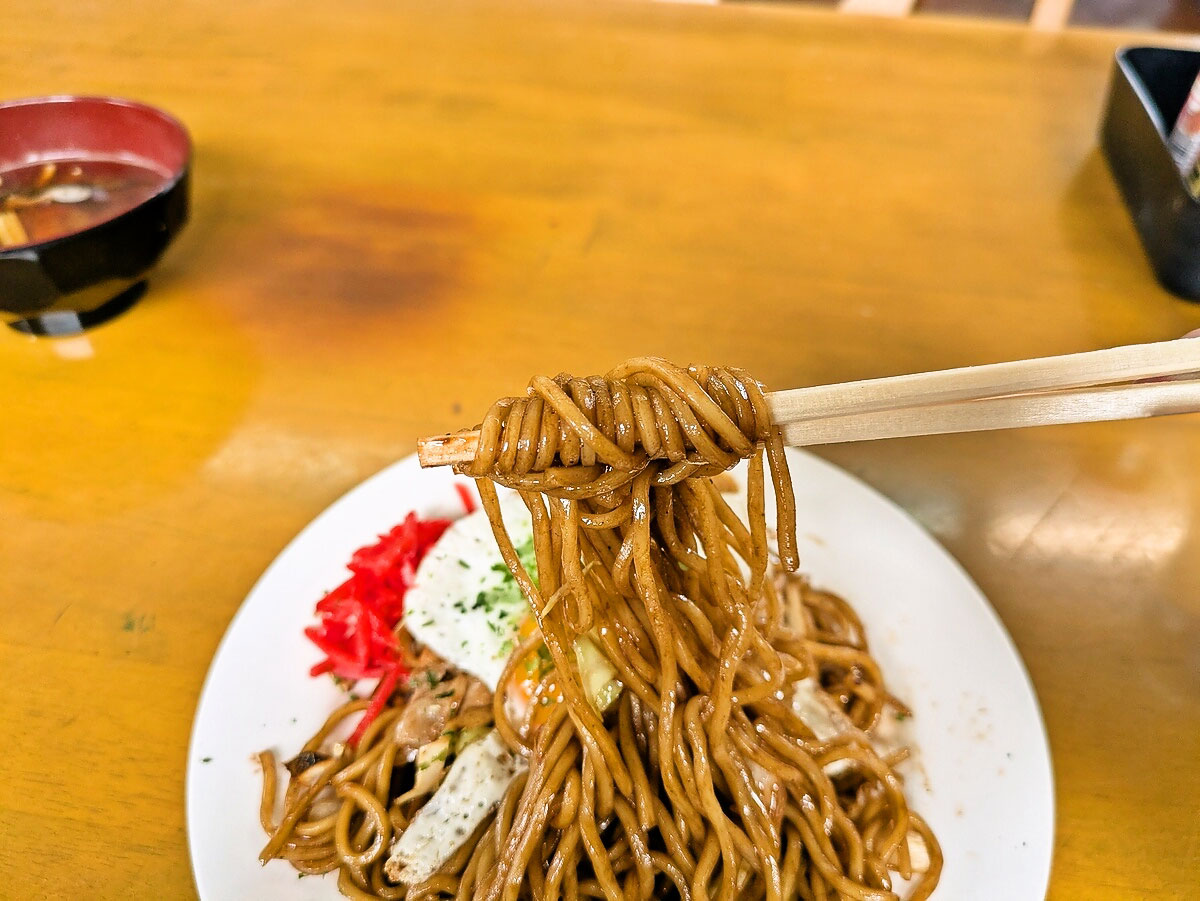 麺はコシがあってソースの香ばしさ・甘辛さがしっかり染み込んでいる