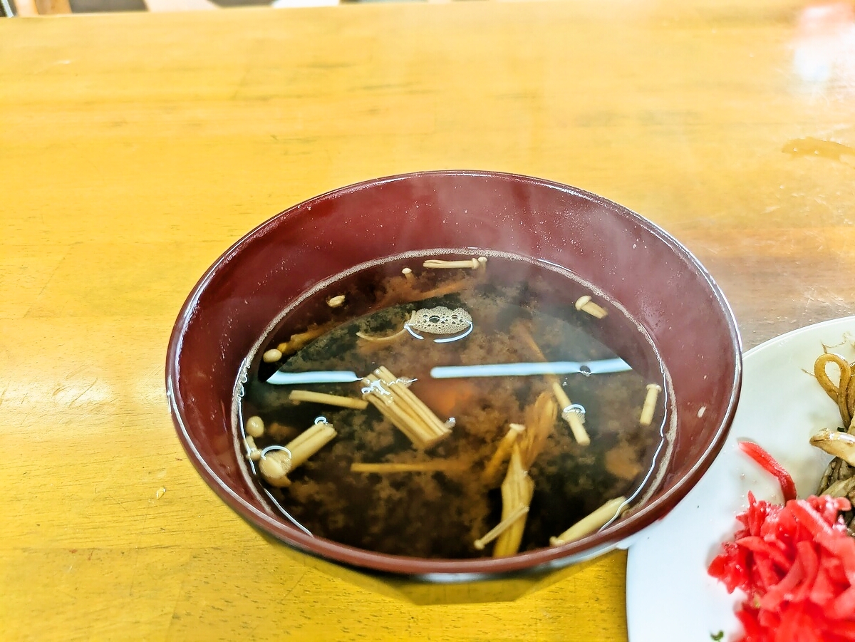 味噌汁の具材は素朴で、出汁の香りがふわりと広がる優しい味