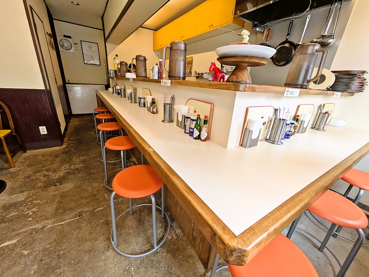 店内はカウンター8席と対面ペア席1卓