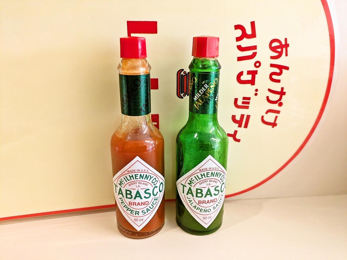 卓上には2種のタバスコとGABAN