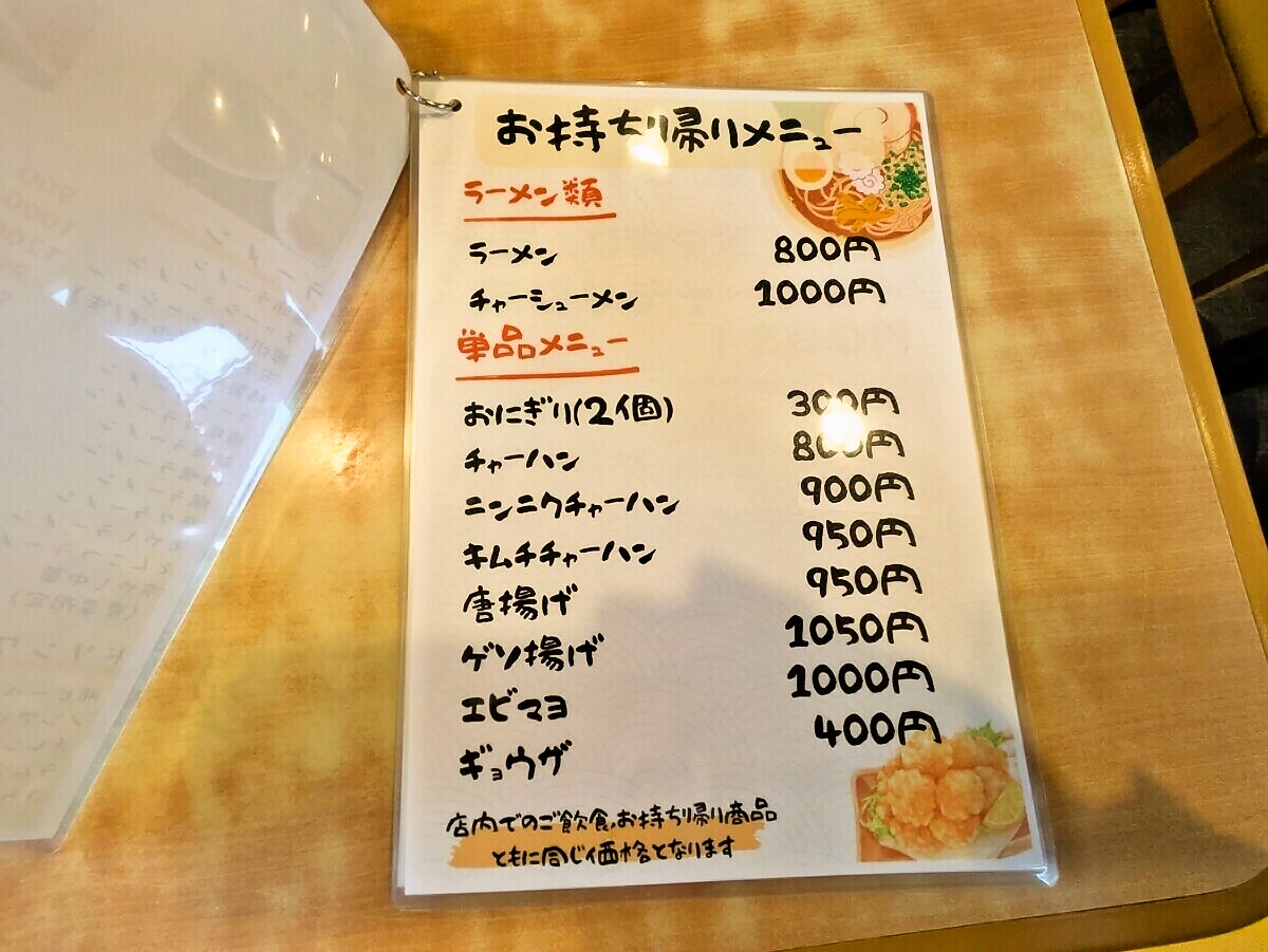 テイクアウトメニュー