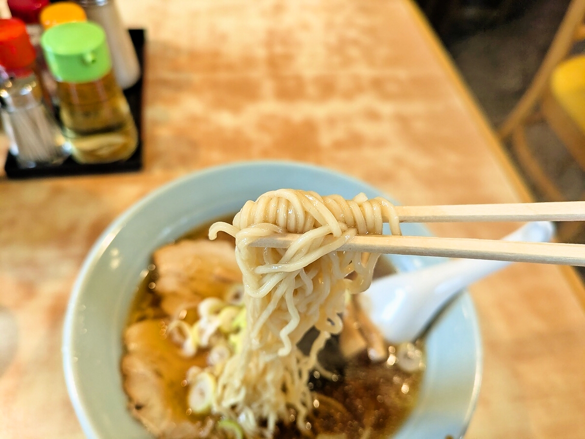 柔らかすぎず、ほどよいコシを残した茹で加減で、スープとの相性が抜群