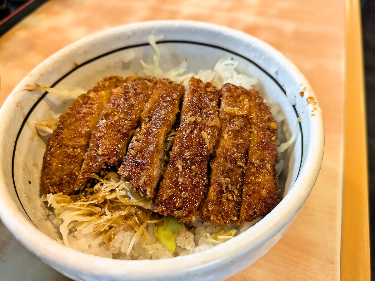 ミニ丼は、見た目以上に満足度の高いソースカツ丼。