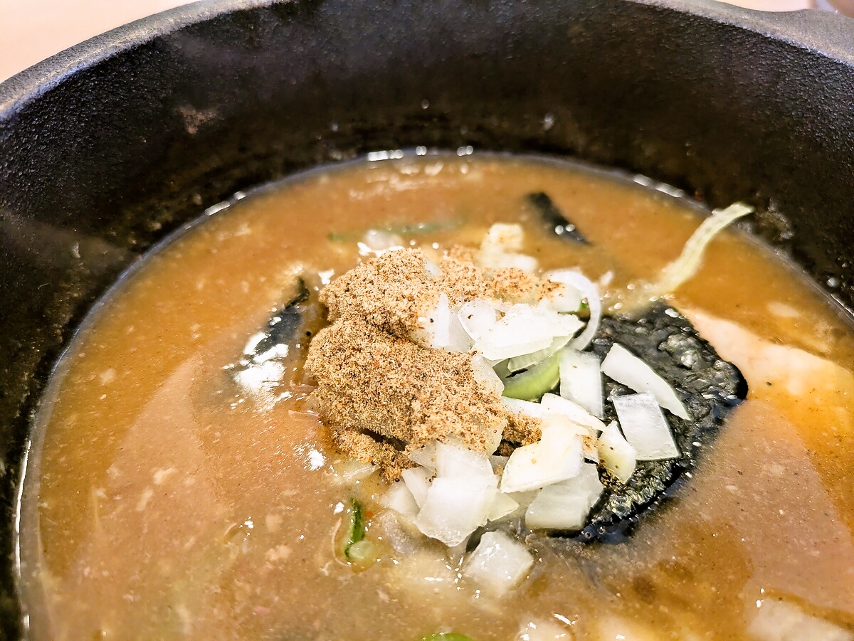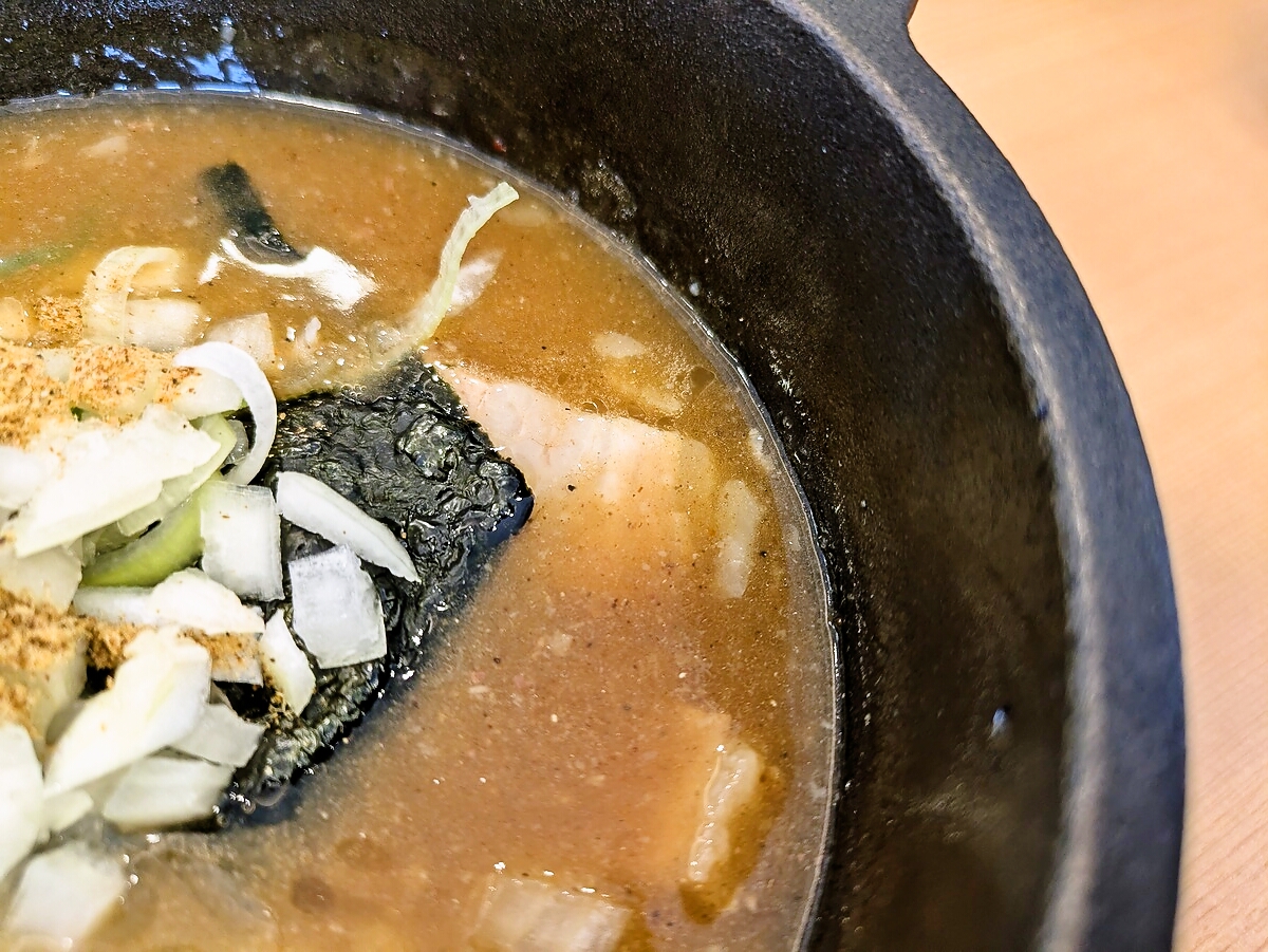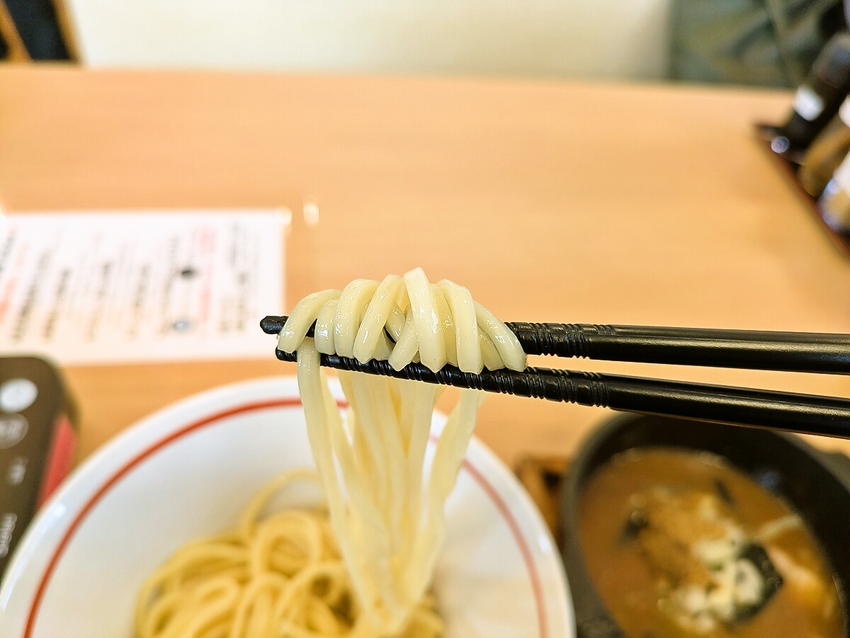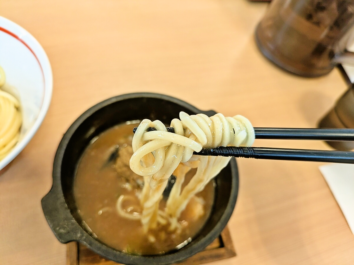 粘度は高めで、麺をくぐらせるとしっかりと絡みつく