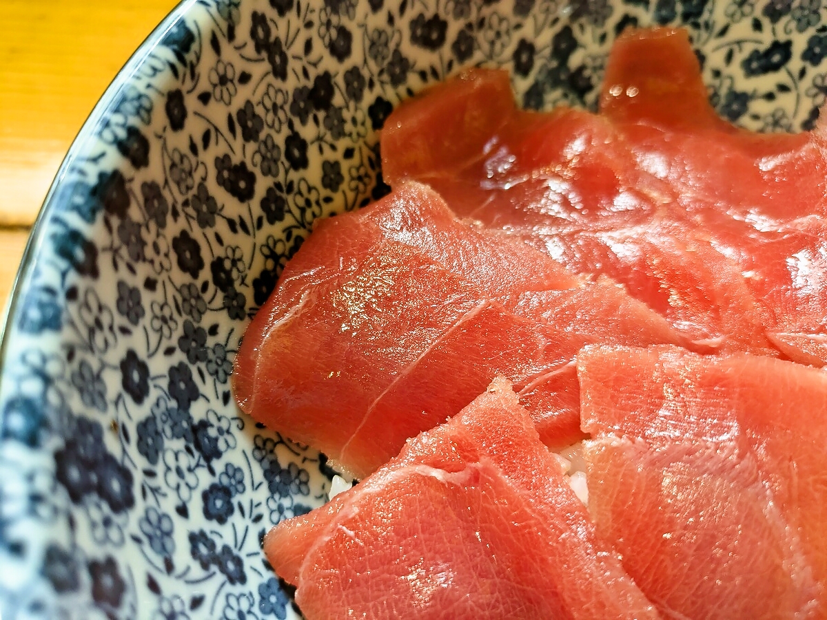 丼の上には、厚みのあるまぐろの赤身が美しく並び、照りのある質感がまず目を奪う