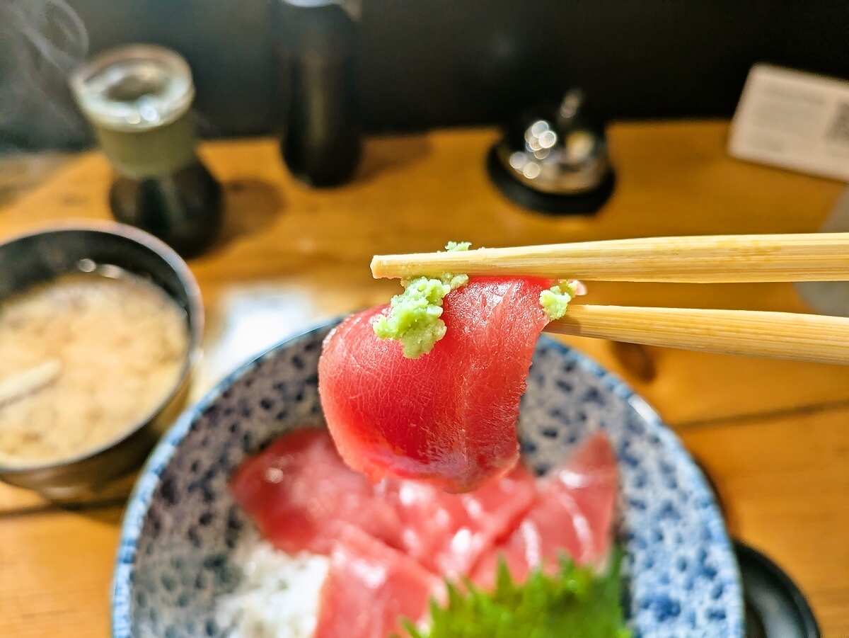 醤油を少し垂らすと、赤身の香りがふわりと立ち、わさびの辛味が輪郭を整えてくれる