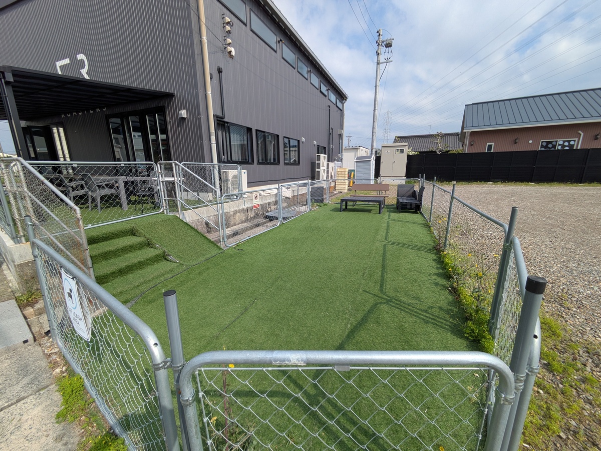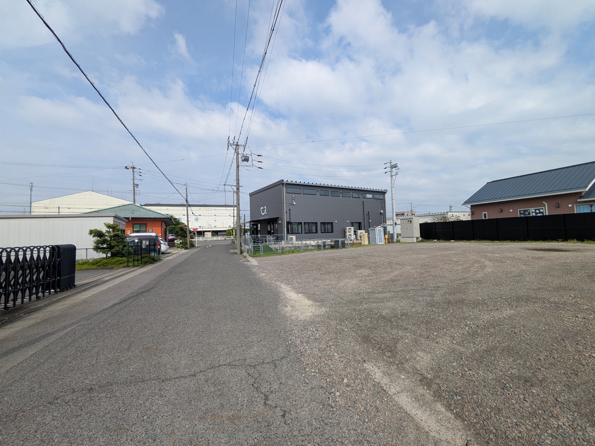 裏側(東)に未舗装だが広めの駐車場が用意されている