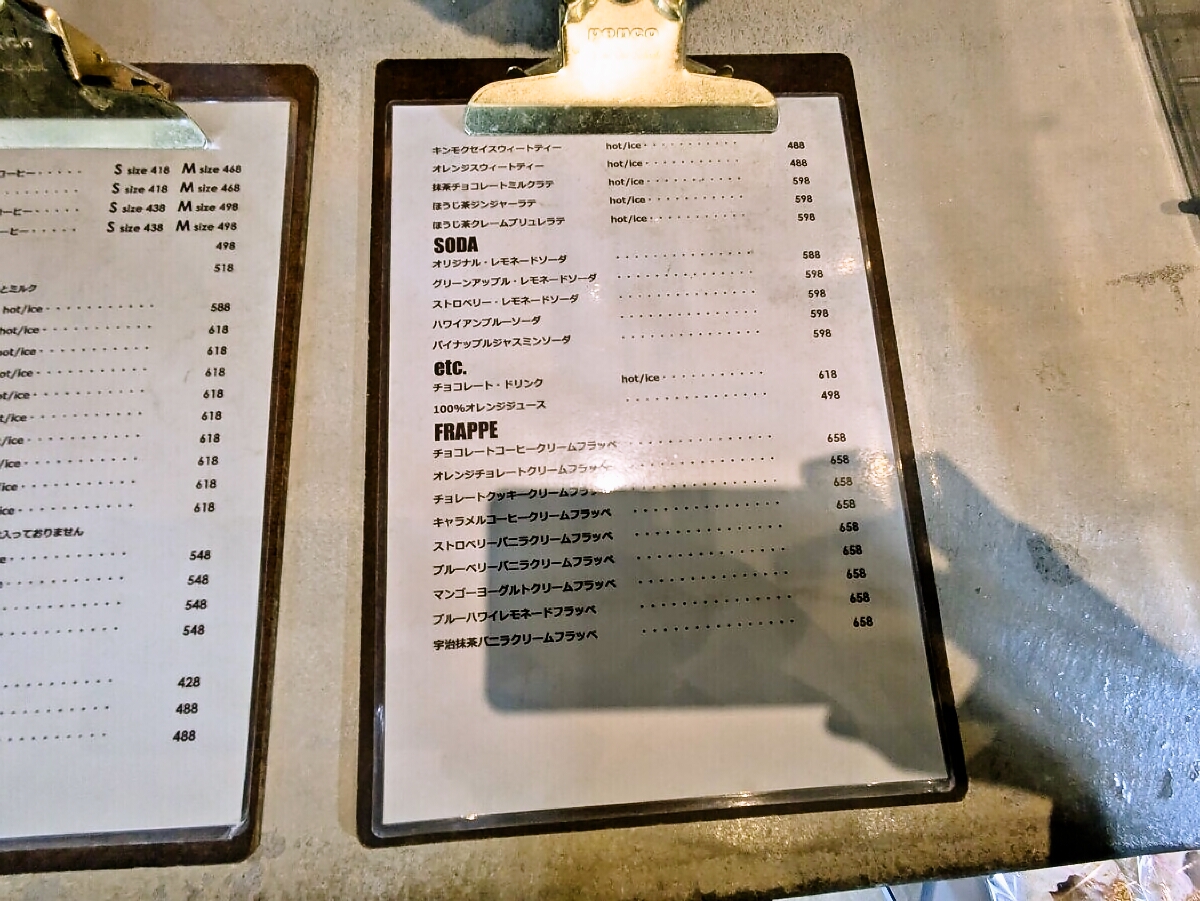 メニューと店内