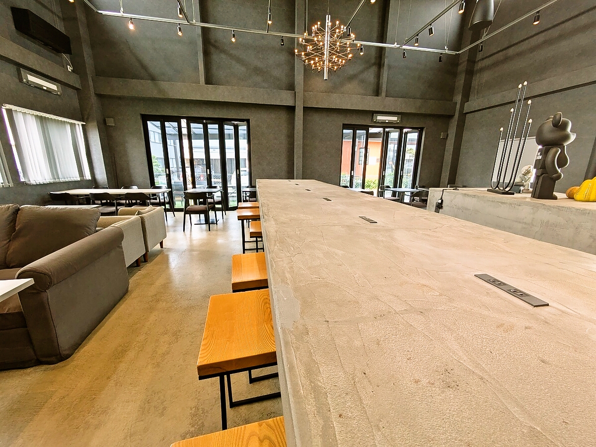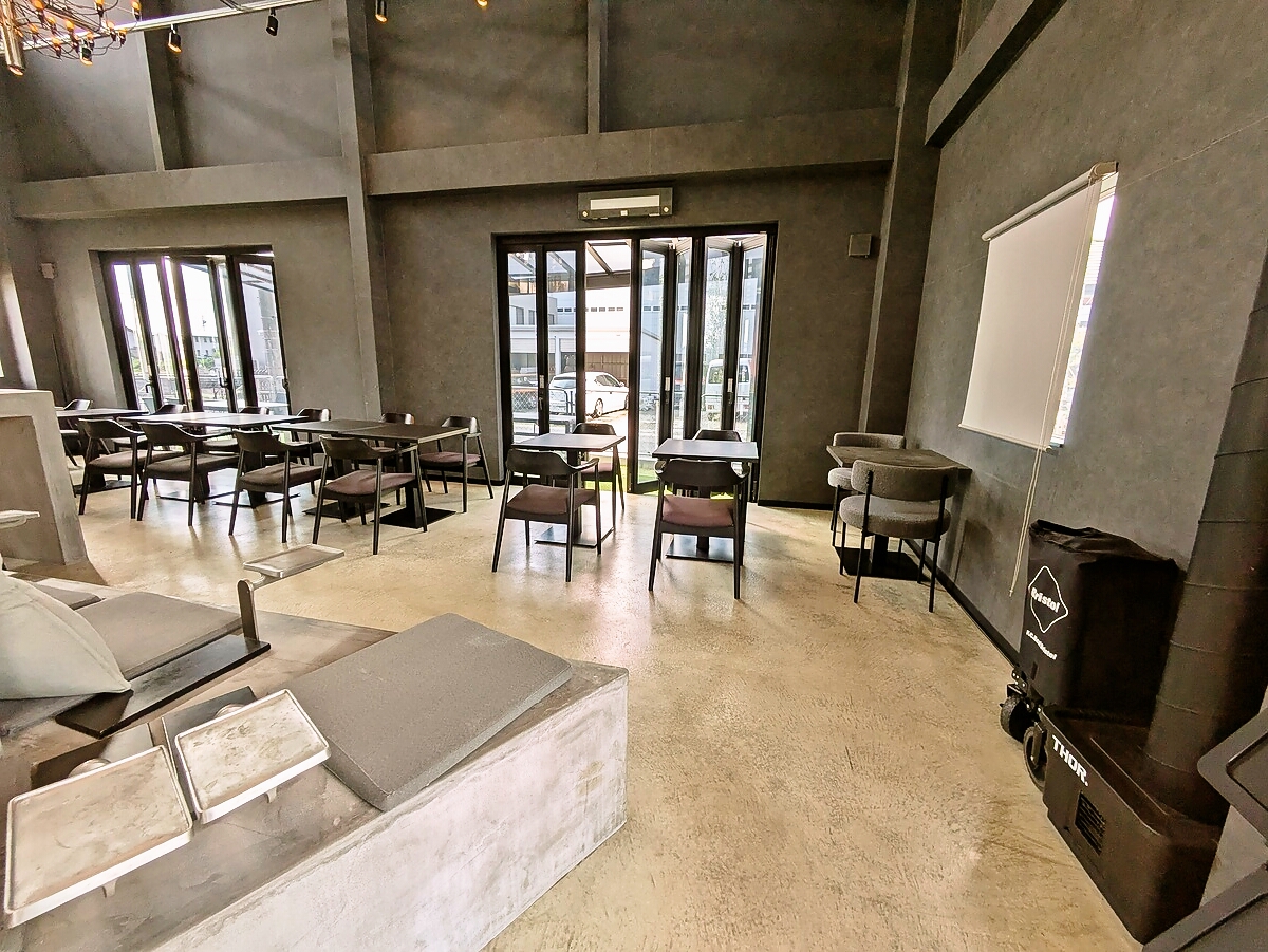 店内は倉庫をリノベーションしたような無機質でスタイリッシュな空間