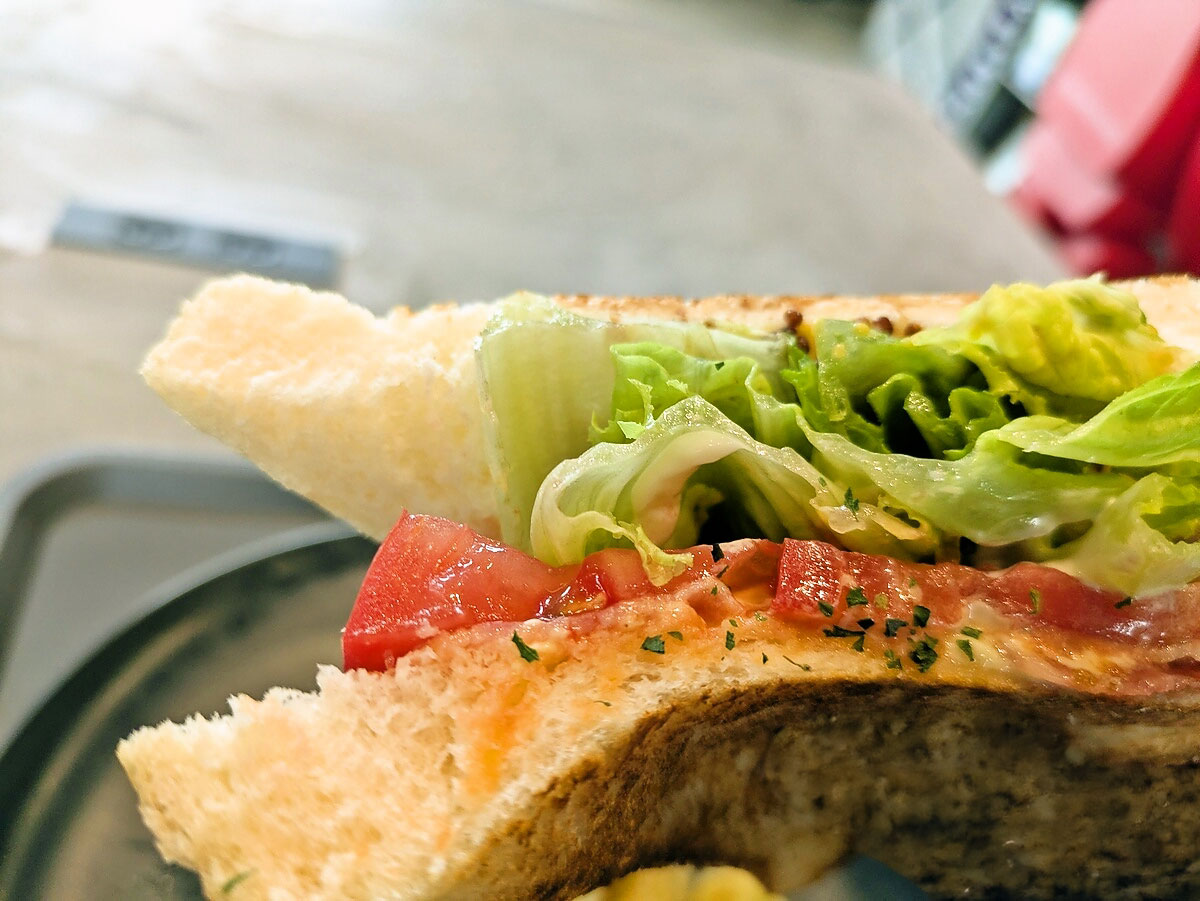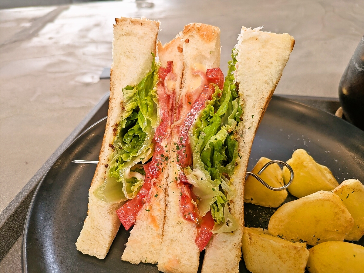 具材のバランスがよく、ベーコンの塩気とトマトの爽やかさが食パンの甘みを引き立てる