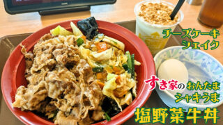 すき家 155号岩倉店(岩倉市):おんたまシャキうま塩野菜牛丼+チーズケーキシェイク